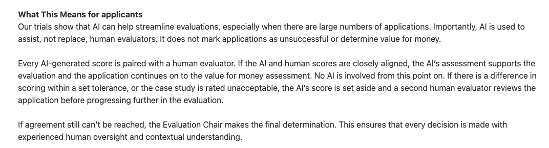The following is from the Federal Government’s BuyICT website about the trialling of AI in tender evaluation: